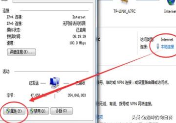 5.点击本地连接,会弹出对话框,然后点击属性。