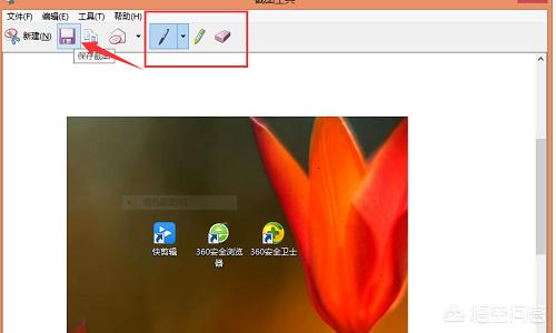 7、然后可以利用上面的工具对图片进行简单的编辑,完成后可以点击“保存”图标。