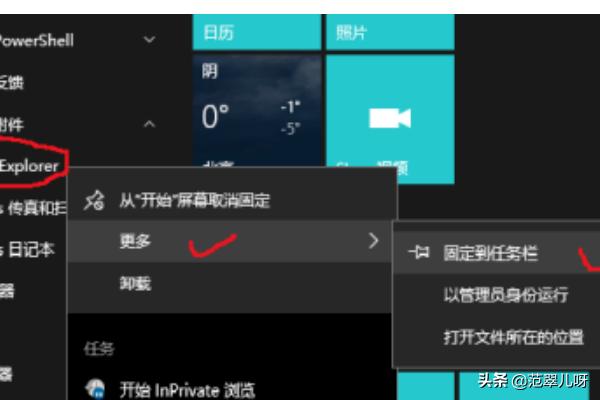 6、我们也可以鼠标右键点一下, 在更多中选“固定到任务栏”。