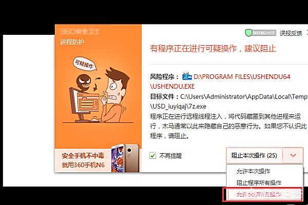 8、如果你安装的有360,会提示你可以程序,勾选【不再提醒】,选择【允许程序所有操作】,就开始自动制作U盘PE了。