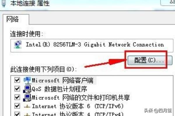 6在本地连接属性窗口中选择“配置”
