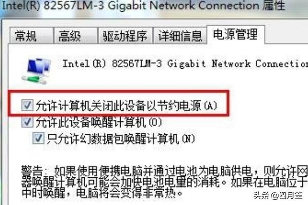 5、在属性页面中将前边的节约电源勾掉。完成。