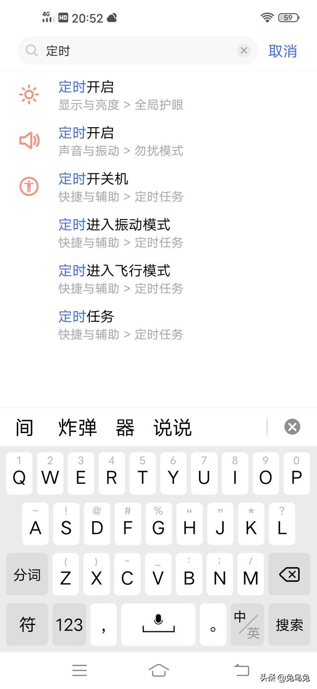 2、然后找到定时开关这个功能设置,可通过顶端的搜索设置项直接搜索。