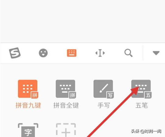 5、在弹出页面,点击输入切换按钮,在弹出的页面,点击五笔即可。