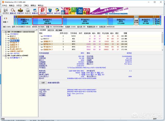 打开之后会自动搜索电脑硬盘的分区,找到你的机械盘,选择需要格式化的分区,点击格式化即可