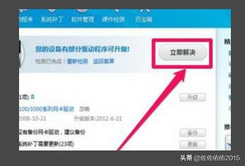 6、等它检测后,如果有驱动程序损坏,界面会提示要更新的驱动程序,按“立即解决”就可以了。