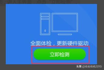 5、在电脑上下载并安装“驱动精灵”,然后启动,进入主界面,点击“立即检测”。