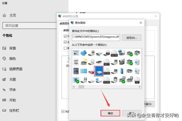 4.点击【桌面图标设置】点击任意一个选择【更改图标】任意选择一个图标并点击【确定】即可。