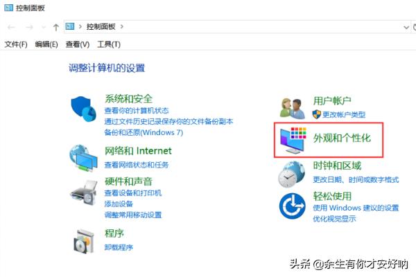 2.打开之后点击【外观和个性化】并选择【任务栏和导航】跳出设置页面;