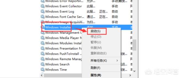 5、找到“Windows Installer”,右键选择“启动”并等待服务启动。